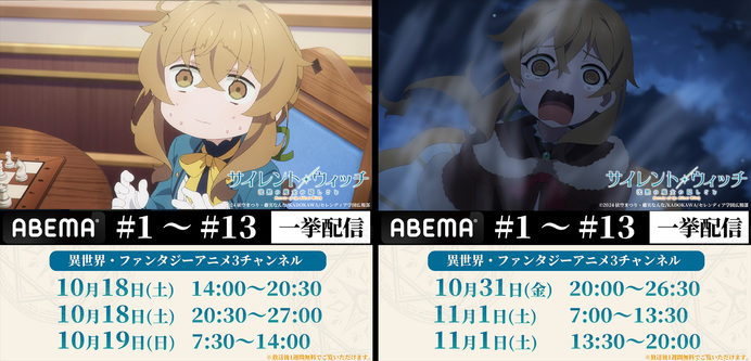 放送終了を記念し、ABEMAにて「サイレント・ウィッチ 沈黙の魔女の隠しごと」全13話一挙配信を実施いたします。